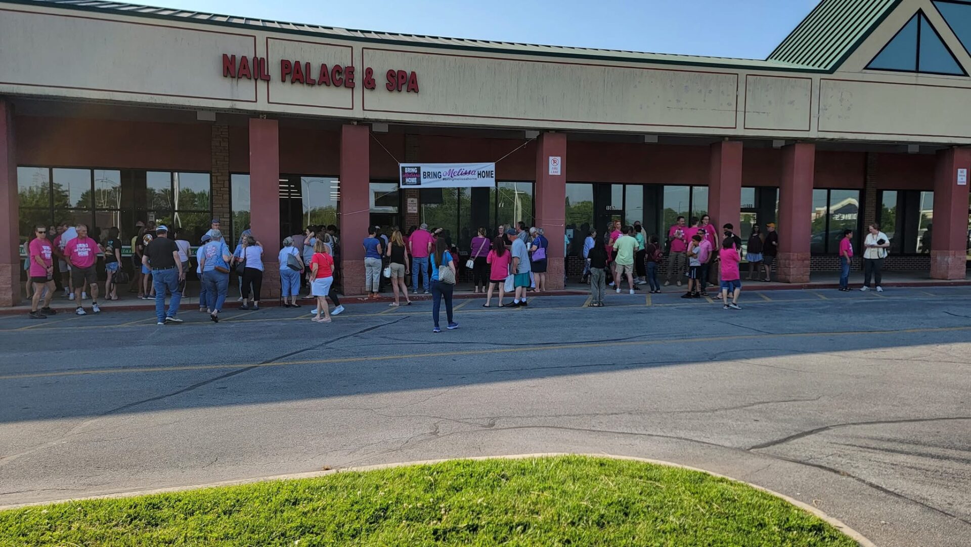 Khoảng 200 người tụ họp bên ngoài tiệm Nail Palace and Spa của bà Tuyền ở Hagerstown, Maryland, hôm 4/6 để bày tỏ sự ủng hộ cho bà. (Ảnh: Facebook Bring Melissa home)