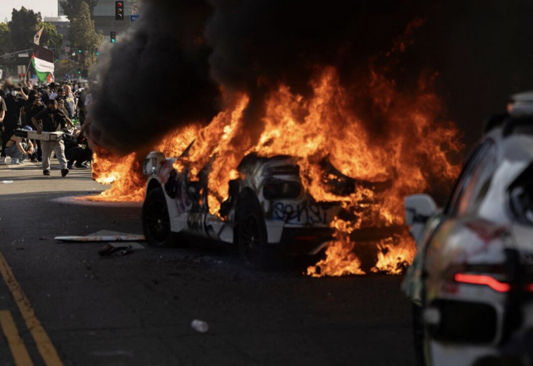 Biểu tình leo thang tại Los Angeles. Ảnh: Getty