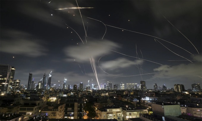 Phòng không Israel đánh chặn đợt tập kích của Iran ngày 18/6. Ảnh: AP