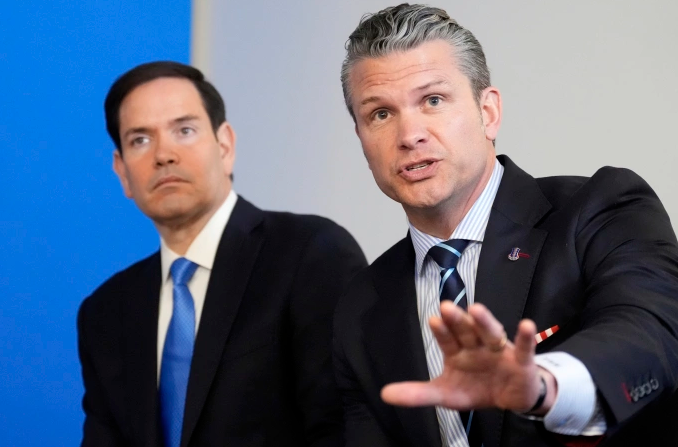 Ngoại trưởng Mỹ Marco Rubio (trái) và Bộ trưởng Quốc phòng Pete Hegseth phát biểu tại Hà Lan ngày 25/6, cùng Tổng thống Mỹ Donald Trump dự hội nghị thượng đỉnh NATO. Ảnh: AP