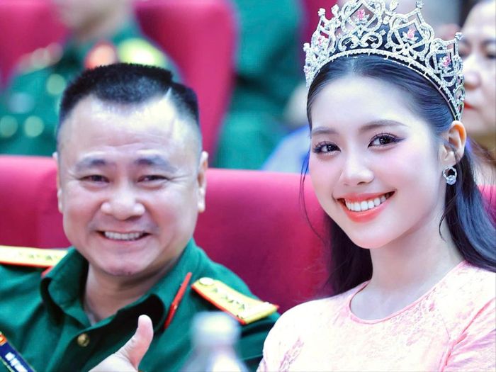 "Tôi nhiều lần được gặp NSND Tự Long trong quá trình công tác tại Đại học Văn hóa nghệ thuật quân đội, nhưng đây là lần đầu tôi gặp lại chú ở cương vị Á hậu 1 Hoa hậu Việt Nam. NSND Tự Long chúc mừng tôi với danh hiệu mới, mong tôi hoàn thành tốt sứ mệnh và thể hiện được vai trò của một nữ quân nhân trong thời đại mới", Á hậu Châu Anh nói với Tiền Phong.