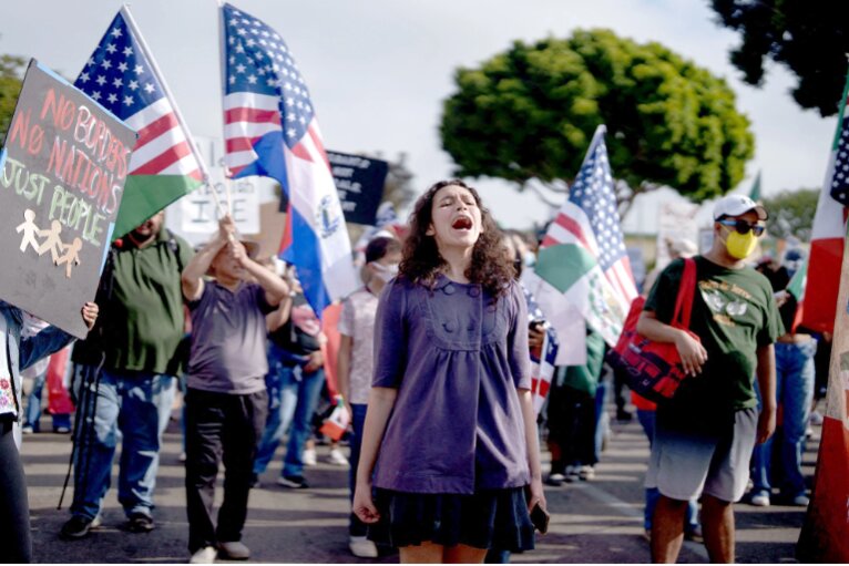 Tuần hành ủng hộ người nhập cư tại TP.Oxnard (bang California, Mỹ) ngày 11.7