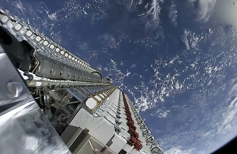 Các vệ tinh sẽ tạo thành một phần của cḥm sao Starlink của SpaceX đang chờ được phóng vào quỹ đạo từ tên lửa Falcon 9 vào ngày 24/5. Ảnh: SpaceX.