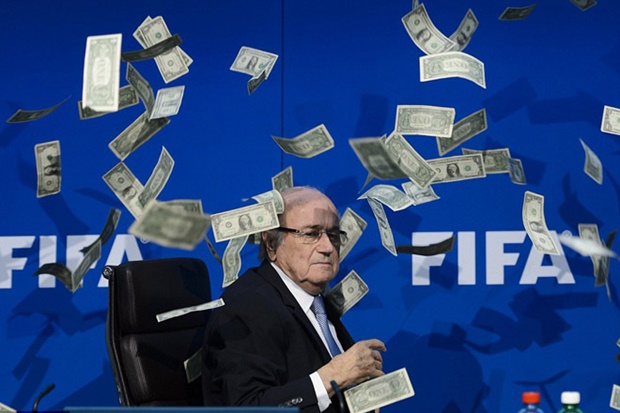 Một sự việc không ai có thể ngờ, và đó là một cú sốc lớn dành cho chủ tịch thất sủng của FIFA, Sepp Blatter khi ông bị diễn viên hài người Anh, Lee Nelson ném một nắm tiền giả vào mặt ngay giữa phòng họp báo.