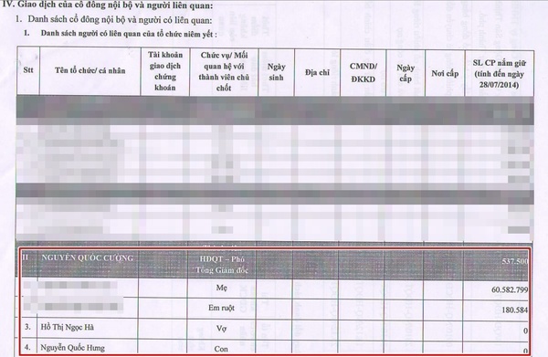 Cũng là 1 kết cục sớm muộn cũng đến thôi. 2 người giờ là bạn bè chăm bé Subeo thôi. Nhớ hồi cuối năm ngoái HH vẫn có tên trong danh sách những người liên quan đến doanh nhân QC trong báo cáo quản trị, giờ thì ko còn nữa. Chắc chắn họ đã hoàn tất thủ tục ly dị rồi. Một cái kết ko bất ngờ. Báo cáo quản trị 6 tháng đầu năm 2015 không còn ghi nhận Hồ Ngọc Hà là vợ của Phó tổng giám đốc Nguyễn Quốc Cường. Hiện tại, những cá nhân liên quan đến ông Nguyễn Quốc Cường chỉ còn mẹ, em gái và con trai.