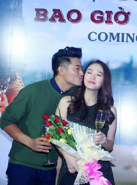 Trong buổi tiệc đóng máy của đoàn phim “Bao giờ có yêu nhau”, Quý Bình liên tục gây bất ngờ khi cưỡng hôn và bồng bế Minh Hằng lên sân khấu trước sự chứng kiến của nhiều người. Hành động này của nam diễn viên điển trai đã khiến "bé Heo" phải bối rối đỏ mặt vì độ lãng mạn trên mức đồng nghiệp này.