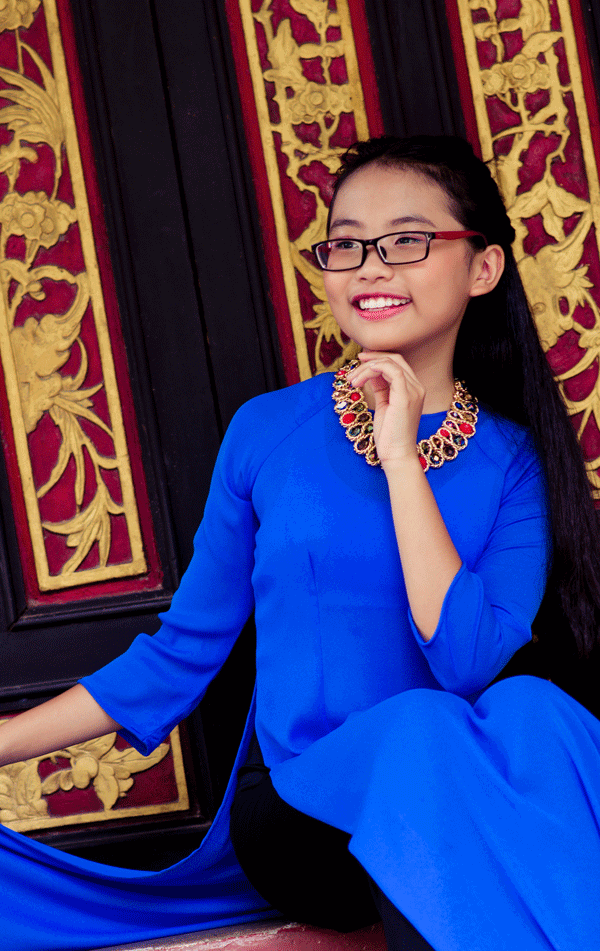 Phương Mỹ Chi cho biết cô bé rất thích mặc áo dài, ngay cả khi không lên sân khấu biểu diễn