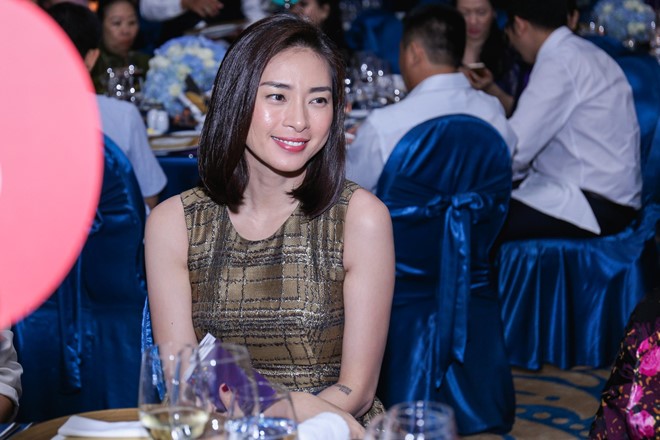 Khác hẳn với phong cách mạnh mẽ, "chuẩn men" khi làm đạo diễn hay trong cuộc sống đời thường, đêm qua, nữ diễn viên sinh năm 1979 bất ngờ dịu dàng và nữ tính trong bộ đầm tối màu.