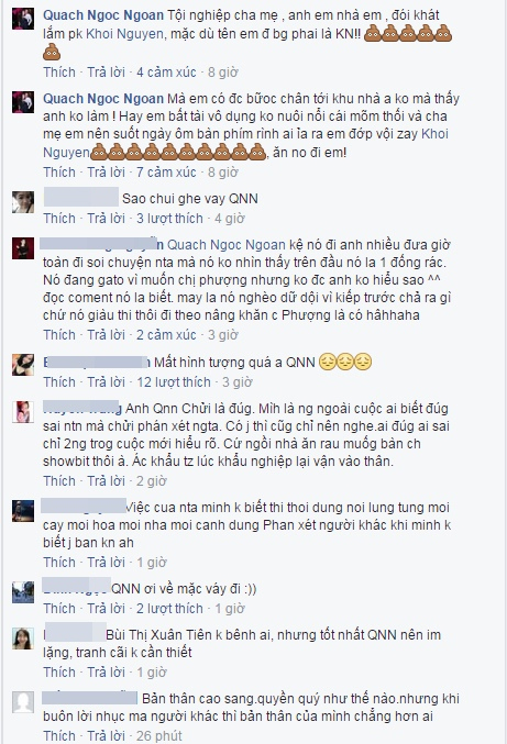 Không ít bình luận an ủi, cho rằng Ngọc Ngoan nên im lặng và tránh đôi co trong những trường hợp như vậy. "Trong những trường hợp này im lặng là vàng, người trong showbiz mà cứ nói ra điều gì đẹp đẽ thì chả sao, không hay không phải lại bị quy chụp là mất hình tượng ngay", một độc giả bình luận.