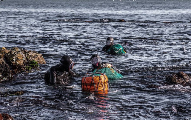 “Trừ bão, bất chấp giá rét chúng tôi cũng không bỏ việc” - bà Song nói. Để mưu sinh, bất đắc dĩ phải thế? “Không hẳn, với chúng tôi công việc này trở thành một nét truyền thống rồi, đó là việc mà đàn ông không được phép bước chân vào nên không bỏ được!” - Kim Chum Ja, 58 tuổi - tiếp lời.