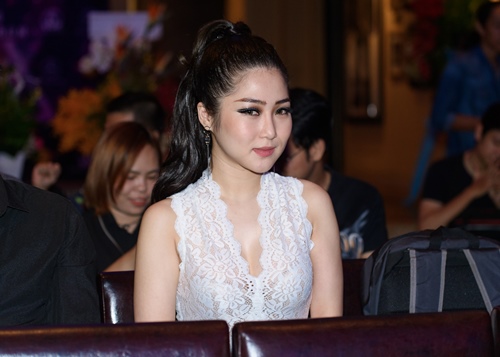 Hương Tràm đến trễ và lặng lẽ ngồi vào hàng ghế khách mời trong buổi họp báo Trịnh Thăng Bình