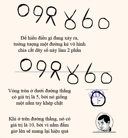 Với các con số từ 8 đến 10, bạn trừ các góc xuống dưới.