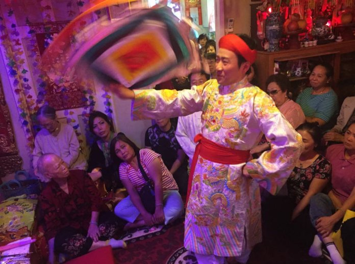 “Người nào có ‘căn’ mà chưa ra trình thánh thì thường bị bệnh tật, ốm đau, mà đây là thứ bệnh ‘âm,’ chữa chạy bằng thuốc thang không khỏi hay làm ăn thất bát, thua thiệt. Dân gian gọi hiện tượng này là ‘cơ đày,’ tức người đang bị thánh đày ải. Nhưng ra hầu đồng rồi thì thường sức khỏe hồi phục, làm ăn được hanh thông. Như tôi, từ bé đã được sinh trưởng ở đền thờ Mẫu có tuổi thọ hơn 80 năm, cũng là cha truyền con nối, đến đời tôi là đời thứ tư,” đồng đền Thu Thủy cho biết thêm.