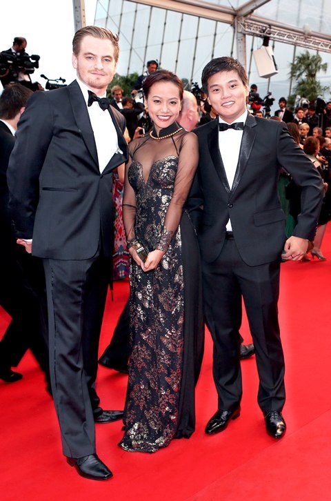 Diễn viên Hồng Ánh trong trang phục áo dài kết hợp với ren mỏng.
