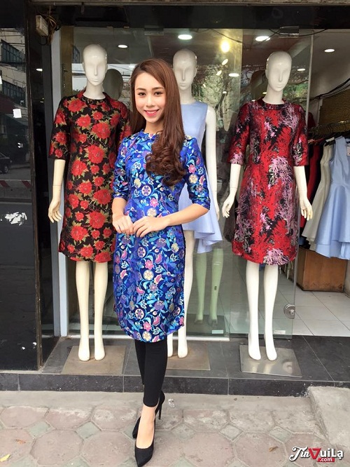 Áo dài cách tân vạt ngắn kết hợp với quần jeans hoặc quần legging.