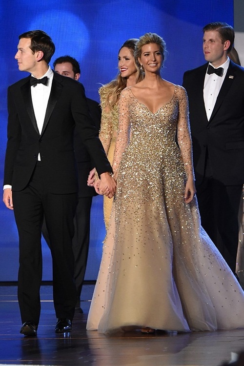 Trong bữa tiệc khiêu vũ ngày cha nhậm chức, cô diện váy đính đá lộng lẫy, sang trọng. Ái nữ nhà Trump hiện giữ chức phó chủ tịch của The Trump Organization. Vogue cho biết trong một cuộc khảo sát mới nhất, mức độ nổi tiếng của Ivanka còn nhỉnh hơn cả đệ nhất phu nhân Mỹ.