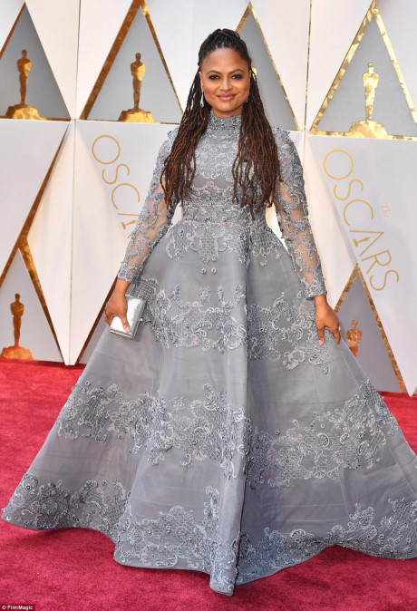 Bộ đầm xòe màu xám của nữ đạo diễn Ava DuVernay bị nhận xét mờ nhạt và càng làm lộ thân hình đầy đặn của cô. Chi tiết thêu ren quanh thân váy cũng không được đánh giá cao.