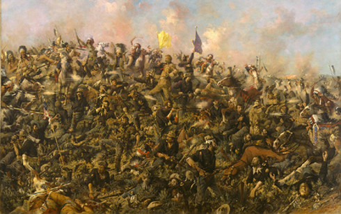 Cảnh quân đội của tướng Custer (lục quân Mỹ) bị tàn sát. Tranh: Edgar Samuel Paxson.