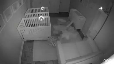 Ban đầu, hai nhóc tỳ giả bộ nằm ngủ ngoan trong cũi. Song khi cha mẹ rời khỏi, một trong hai đứa trẻ hiếu động trèo ra ngoài và bắt đầu di chuyển các tấm nệm trên sàn. Cuộc vui trở nên rộn ràng hơn khi bé còn lại tham gia.