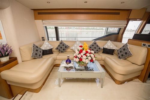 Bên trong "chiến mã" của mỹ nữ này được thiết kế đầy đủ các tiện nghi bao gồm phòng giải trí, phòng ăn ,phòng khách và khu quầy bar, khu tiệc BBQ ngoài trời. Ngay khi du thuyền triệu USD cập bến, những hình ảnh đầu tiên được chủ nhân đăng tải lên facebook. Trước đây việc kiều nữ họ Lý khoe nhà, các thể loại hàng hiệu kim cương đắt giá đã được rất nhiều người trầm trồ nhưng lần này độ chịu chơi của Lý Nhã Kỳ là thuộc hàng thượng thừa.