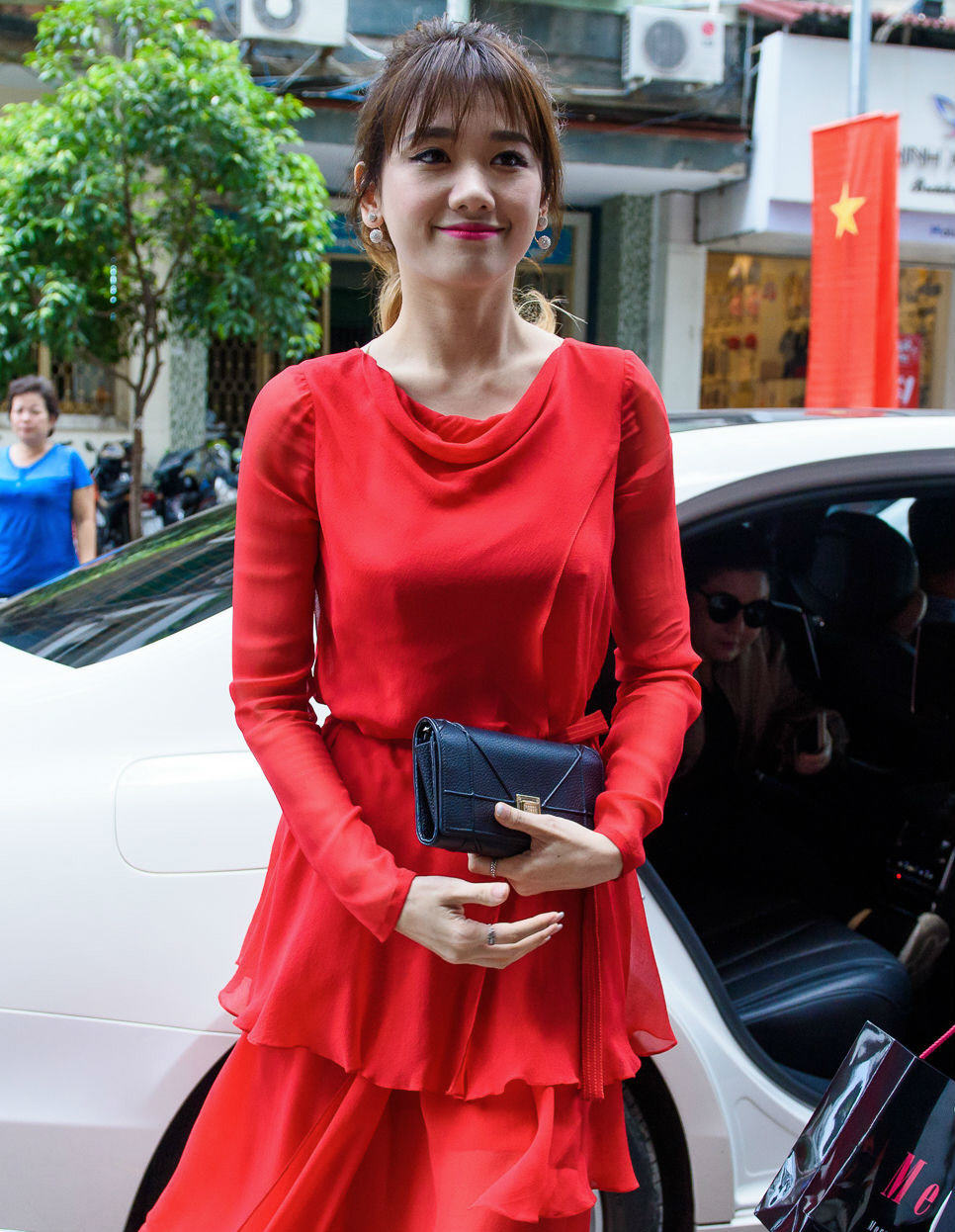 Vietbf.com - Cho dù sự kiện ồn ào của chồng và đài Vĩnh Long, Hari Won vẫn tươi tắn rạng rỡ đi tham gia sự kiện, khiến cô diện đầm đỏ nổi bật thu hút mọi ống kính phóng viên ngay khi xuất hiện bước xuống xe.