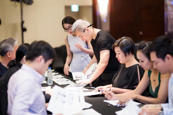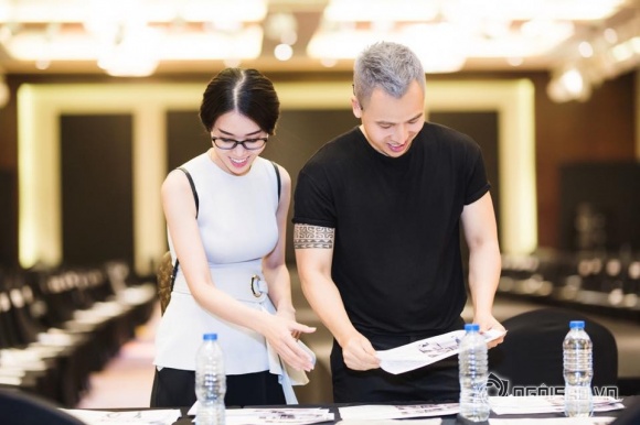 Hình ảnh cô cùng ông bầu Khắc Tiệp tất bật đêm chung kết "New Face, New Style" mới đây