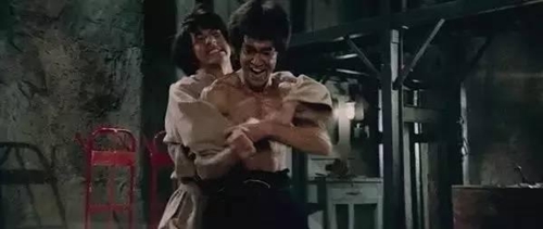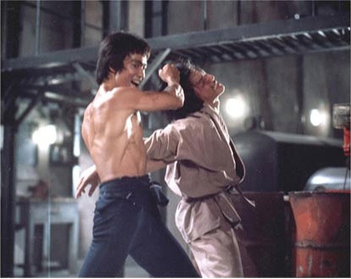 Thành Long bị Lý Tiểu Long "đánh te tua" không thể phản kháng lại trong Long tranh hổ đấu (1973).