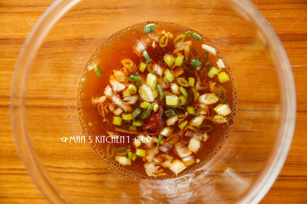 - Trộn đều nước dùng, nước tương, đường, tương đậu, gừng và hành lá để làm sốt trộn salad.