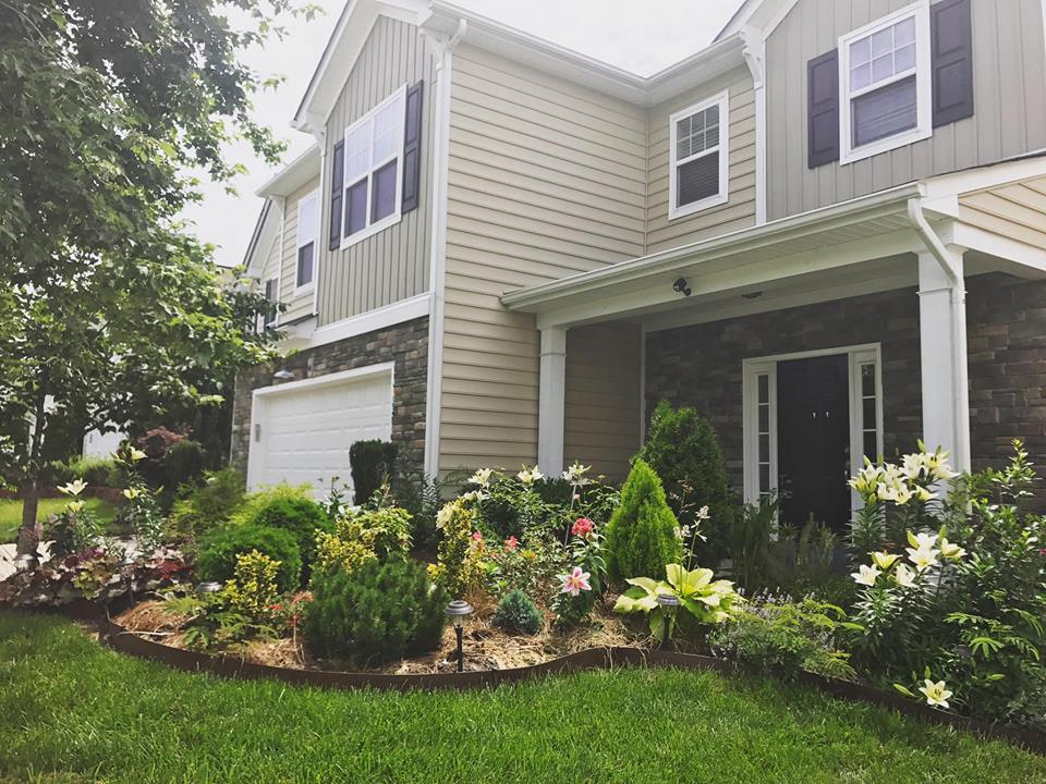 Khoảng sân nhỏ trước nhà trồng nhiều bụi hoa nhỏ