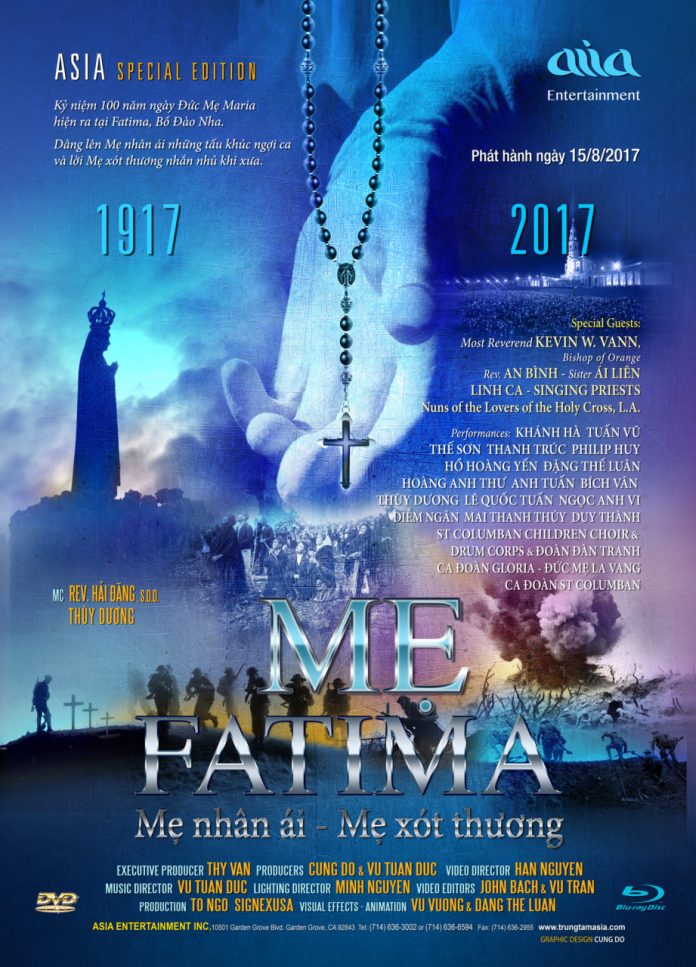 GARDEN GROVE, California (NV) – “Mẹ Fatima, Mẹ Nhân Ái và Xót Thương” là DVD ca nhạc đặc biệt kỷ niệm 100 năm ngày Đức Mẹ Maria hiện ra tại Fatima, Bồ Đào Nha, do trung tâm Asia thực hiện sẽ phát hành ngày 15 Tháng Tám.