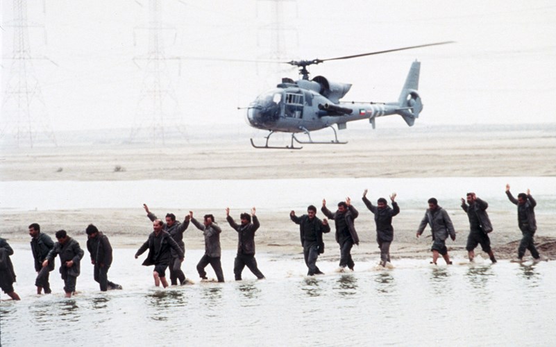 Trực thăng Kuwait áp tải lính Iraq bị bắt làm tù binh.