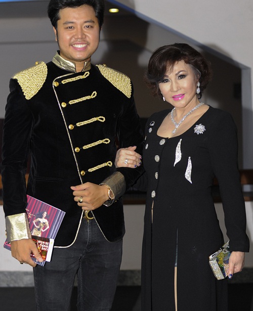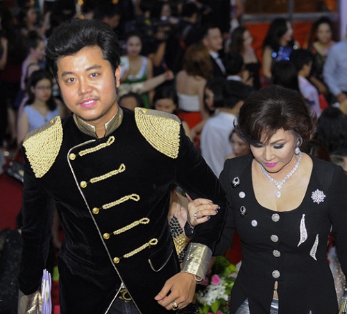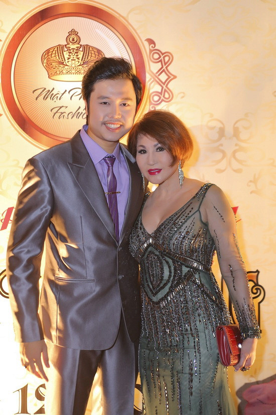Tham gia sự kiện này, doanh nhân Yvonne Thúy Hoàng dù đã ở tuổi 60 nhưng bà vẫn tự tin khoe ngực căng đầy khi diện bộ đồ màu đen được thiết kế trễ cổ. Còn "phi công trẻ" Hoàng Việt mặc áo khoác nhung dày dặn giữa thời tiết oi bức của mùa hè Hà Nội.