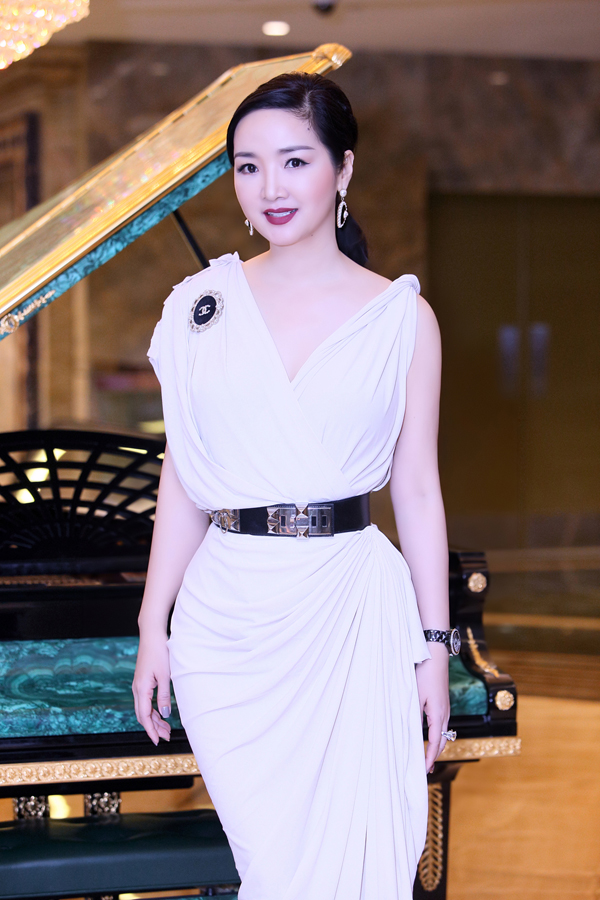 Chị mặc váy hàng hiệu, phụ kiện ton-sur-ton nhìn rất thanh lịch, quý phái. Ở tuổi 46, Giáng My vẫn giữ dược nhan sắc xinh đẹp, mặn mà của mình.