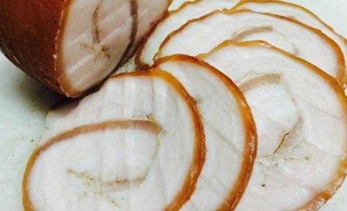 - Bước 5: Cho thịt ra đĩa, đợi khi thịt nguội thì bọc bằng màng bọc thực phẩm để vào ngăn mát tủ lạnh. Đợi khoảng 3 - 4h đồng hồ cho khối thịt se lại, vẫn giữ nguyên hình thức khối thịt cuộn là được. Sau khi thịt nguội, bạn bỏ ra khỏi tủ rồi cắt đi phần chỉ bao quanh miếng thịt, thái thành những miếng mỏng.