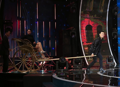 Trong một tiết mục, MC Nguyên Khang đưa hẳn chiếc xe lôi kiểu cũ lên sân khấu
