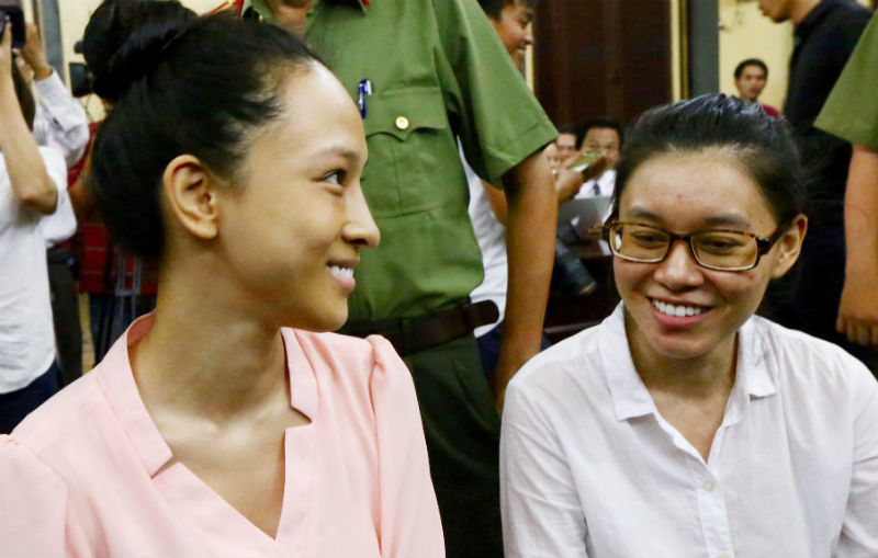 Bị cáo Phương Nga và Thùy Dung tươi cười khi được cho tại ngoại
