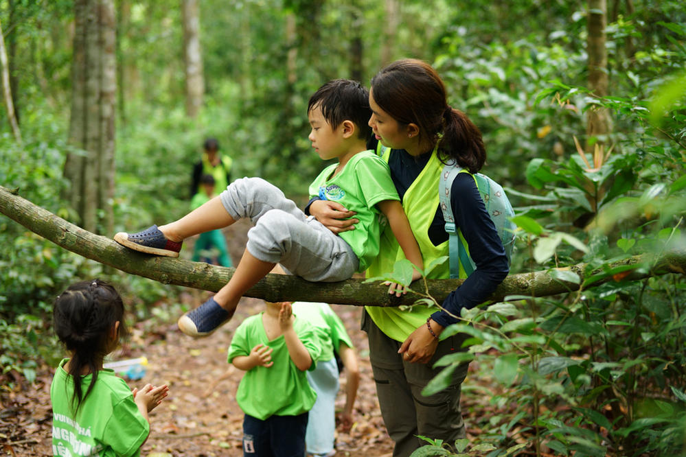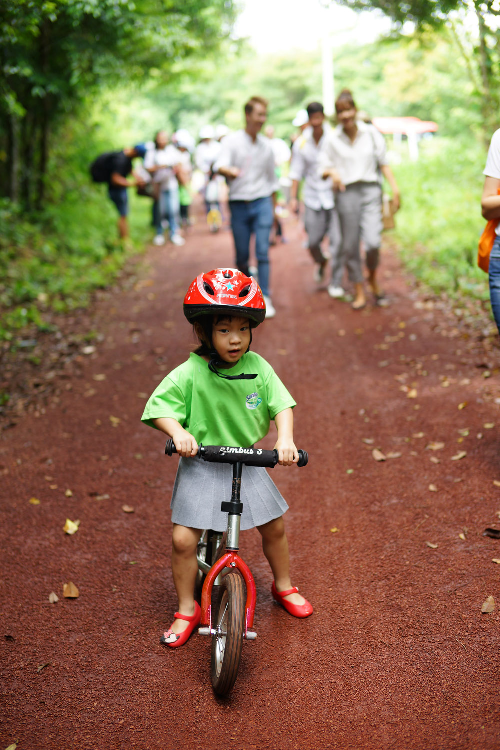 Được đi dã ngoại cùng bố mẹ, hai bé Rio và Cherry tỏ ra rất thích thú và nhiệt tình tham gia các hoạt động như đi xe đạp thăng bằng trên quãng đường rừng 3km để tìm hiểu về các loại cây cối, côn trùng.