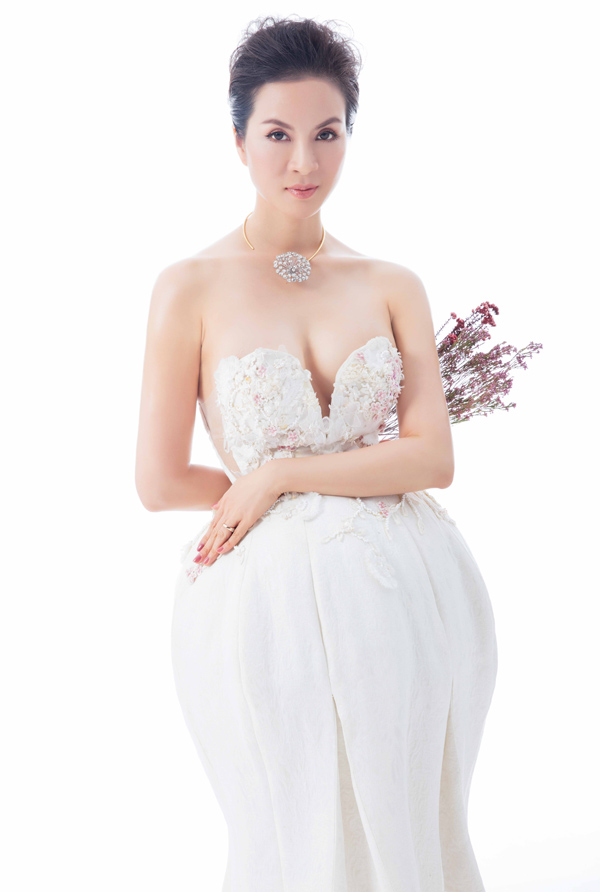 Vóc dáng cao như ngươi mẫu với 3 vòng chuẩn khiến nữ MC luôn tự tin chọn những trang phục ôm sát, cắt khoét vòng một làm tôn vóc dáng của mỹ nhân từng đoạt danh hiệu Á hậu Điện ảnh 1992.