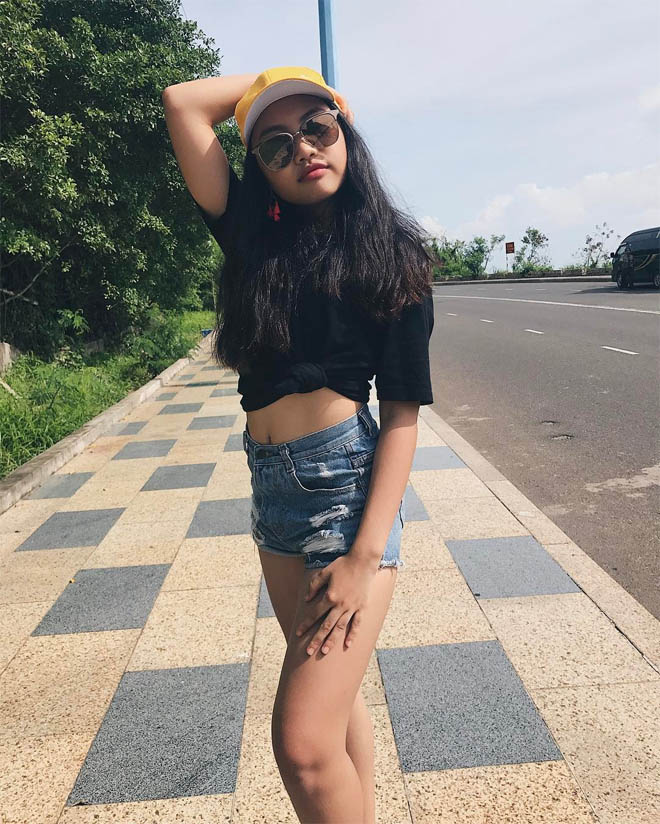 Khác với hình ảnh đen nhẻm, bình dị, ngây thơ trước đây, chị Bảy đã dần ra dáng thiếu nữ và bắt đầu ăn mặc sành điệu. Trong chuyến đi biển Vũng Tàu cùng gia đình, Phương Mỹ Chi không chỉ diện áo crop top, quần short ngắn mà còn có cách tạo dáng rất chuyên nghiệp trước ống kính.