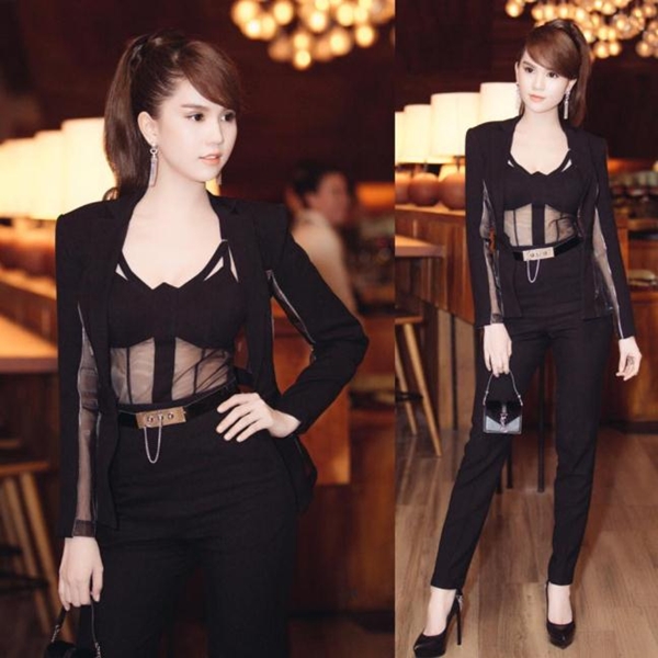 Sỡ hữu thân hình gợi cảm với vòng eo 56cm trứ danh trong giới giải trí, Ngọc Trinh tự tin diện nội y màu đen mặc kết hợp với trang phục làm nổi bật nước da trắng sứ.