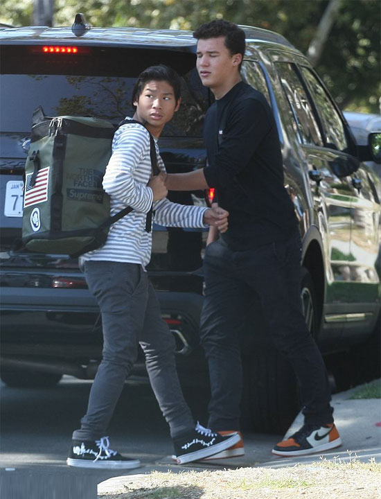 Pax Thiên được trông thấy tại bãi đỗ xe ở Los Angeles để chuẩn bị lên đường tham gia chuyến dã ngoại.