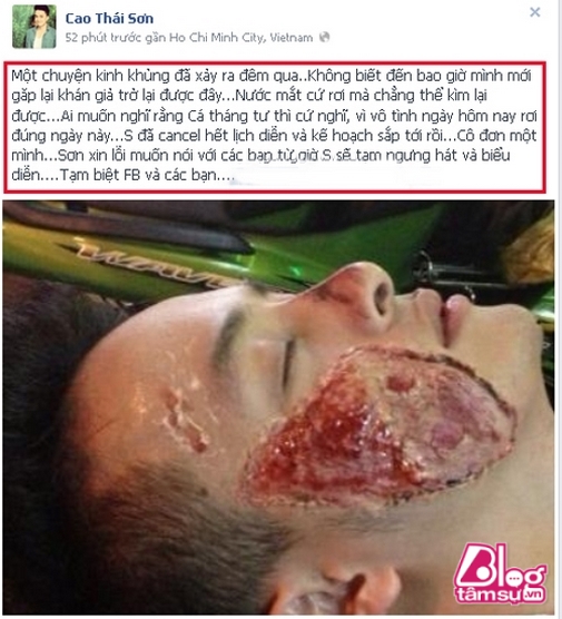 Cách đây ít giờ, trên một Fanpage đã đăng tải những hình ảnh tình tứ cửa một cặp trai gái ở trong quán bar, page này ghi rõ đó là hình ảnh của nam ca sĩ Cao Thái Sơn. Nhìn những hình ảnh được cho là của Cao Thái Sơn khá choáng, anh uống rượu say bí tỉ, còn ôm hôn cô gái lạ mặt đó, một lúc sau lại nằm ngả ngớn ra ghế sofa rất mất hình tượng.