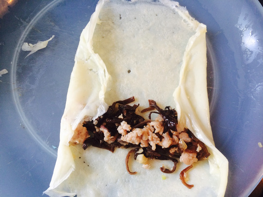 Cho nhân vào vỏ bánh và cuộn lại
