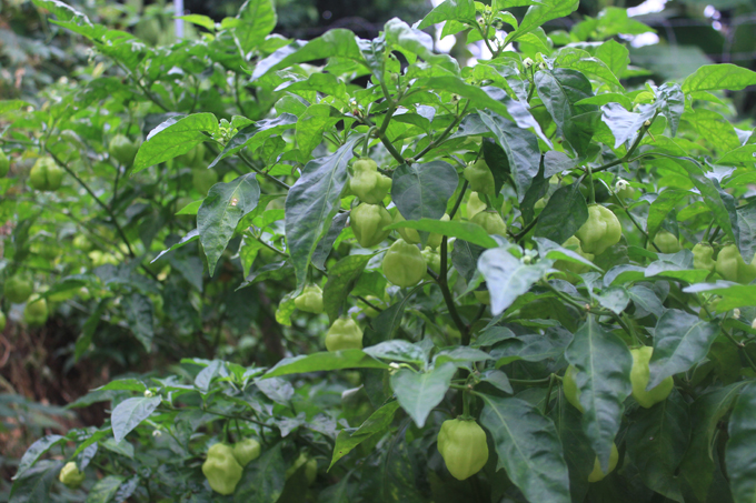Trong vườn vừa nam ca sĩ có đủ loại cây từ đậu cô ve cho tới cây ớt chỉ thiên sai quả.