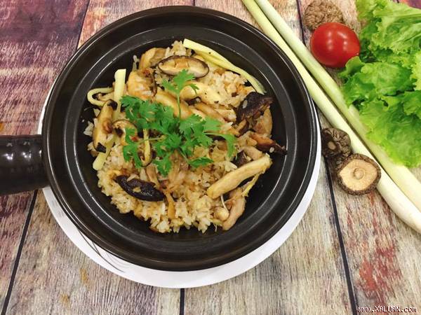 - Đun nóng 2 th́a dầu ăn, cho tỏi băm và sả cắt khúc vào phi thơm. Lần lượt cho gà, măng và nấm vào xào với một chút gia vị, 1 th́a dầu hào, 1 th́a hạt nêm cho chín đều. Khi các nguyên liệu trên đă chín và thấm đều gia vị, cuối cùng cho cho cơm đă nấu chín và 1/2 th́a nhỏ bột ngọt vào đảo đều, nêm nếm lại cho vừa miệng, trút ra niêu đất, nung nóng và thưởng thức.