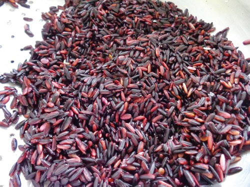 - Bước 1: Vo thật sạch gạo nếp cẩm, ngâm nước từ 3h đến 4h, sau đó đổ gạo và nước vào xoong đã hòa lẫn một thìa cà phê muối.