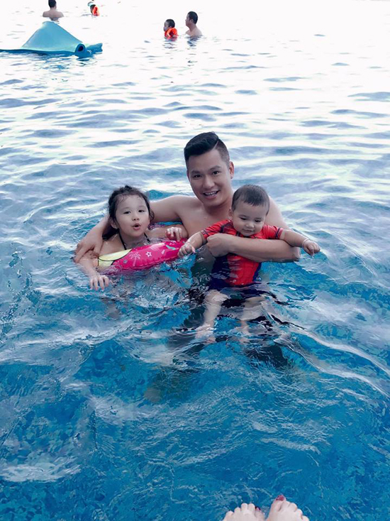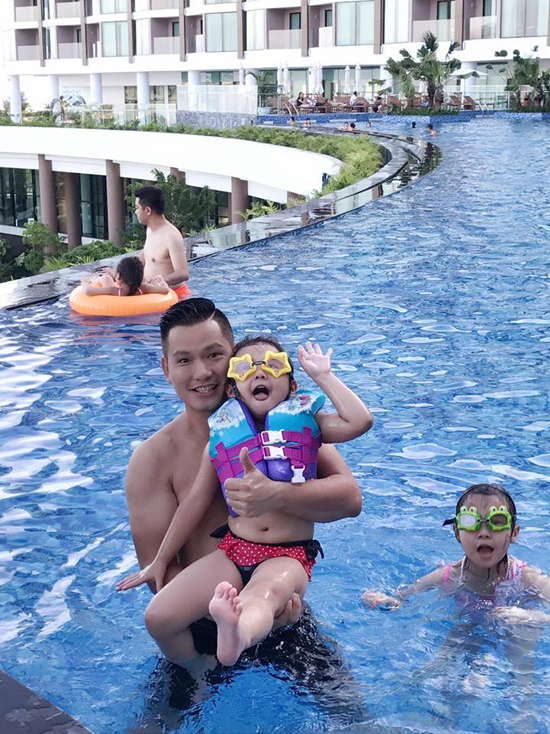 Dịp 2/9, vợ chồng Jennifer Phạm - doanh nhân Đức Hải đưa cả hai con đi nghỉ mát. Hoa hậu hạnh phúc ghi lại những khoảnh khắc nô đùa vui vẻ của ông xã bên hai con - bé Na và bé Nu.