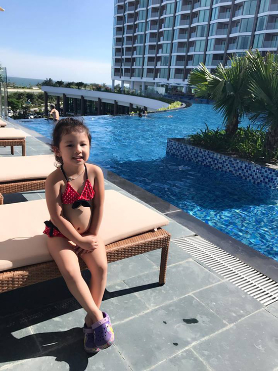 Hoa hậu chia sẻ một số hình ảnh của bé Na và bé Nu trong dịp cả nhà đi nghỉ dưỡng tại một resort ở Sầm Sơn.