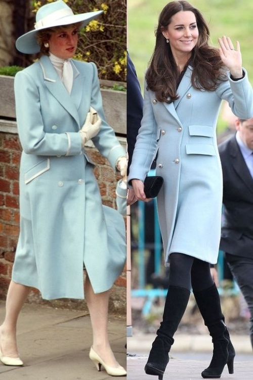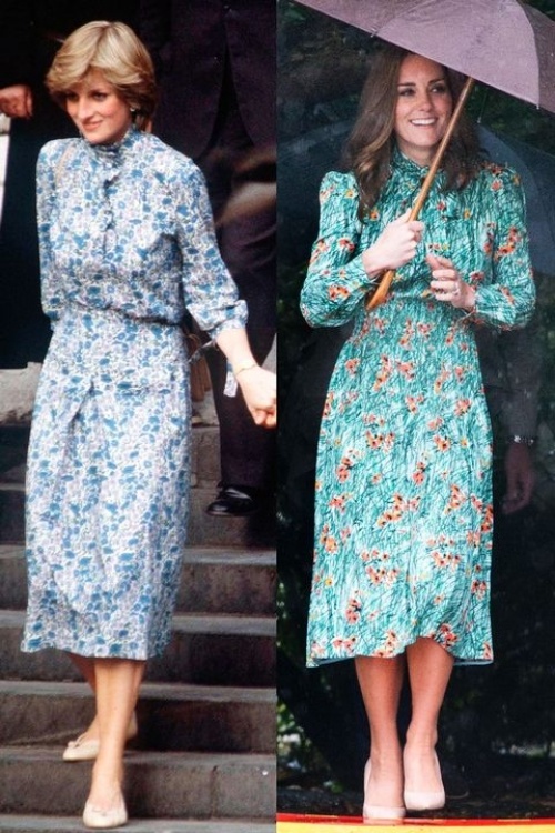 Công nương Kate Middleton ăn mặc giản dị nhưng vẫn sang trọng. Cô thường xuyên áp dụng phong cách ăn mặc của mẹ chồng. Nhiều lần, công nương Kate mặc giống cố công nương Diana.