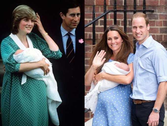 Công nương Kate cũng mặc đầm chấm bi giống công nương Diana khi bước ra chào dân chúng sau khi sinh con.